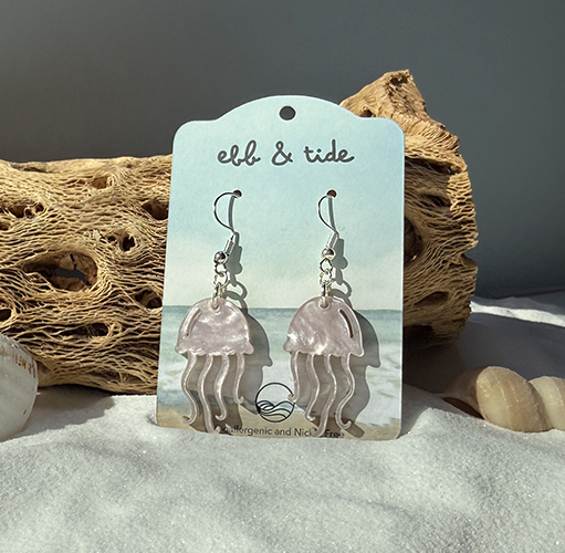 These earrings feature a jellyfish design with a lightweight, translucent finish and soft movement. Comfortable for everyday wear, they’re finished with hypoallergenic hooks for all-day comfort.