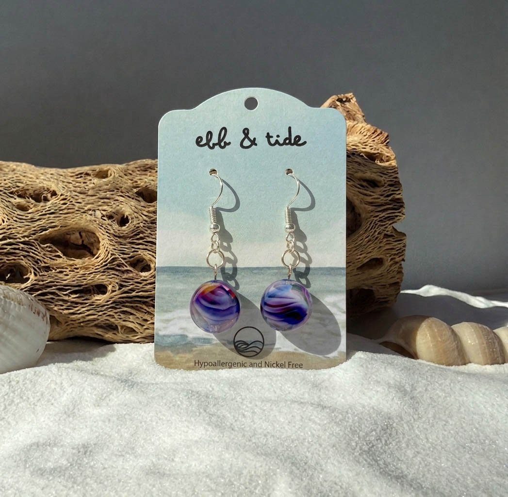 Iridescent ocean wave earrings with a soft, coastal-inspired design that captures the light and movement of the sea. Lightweight and eye-catching, they’re finished with hypoallergenic hooks for comfortable, all-day wear.